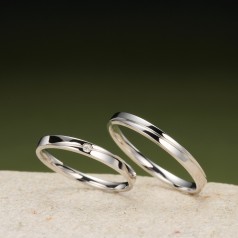 平打ちタイプの結婚指輪。斜めにさりげなくラインが入っているのでスッキリ見えるデザインです。