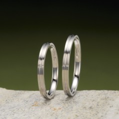 ストレートのリングと表面のヘアラインを施すことによって、モダンでおしゃれな印象が際立つ結婚指輪です。